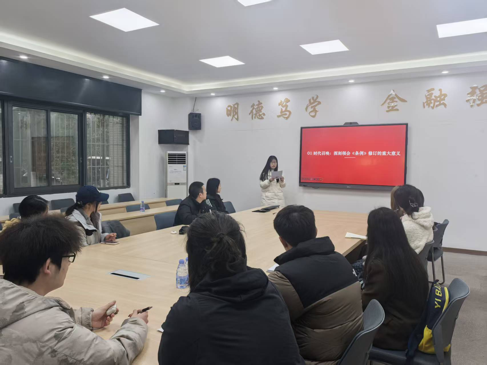 2025年12月26日,金融学院学生第一党支部在田家炳317召开十二月组织生活会。会议由党支部负责人王晓云主持,支部全体党员参与,围绕科技发展、党员职责与历史感悟等主题展开深入学习与交流。
